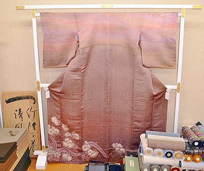 色鮮やかな作品が多い[一竹辻が花]を支えるのが、細かい絞りで染め分ける染めの技術でけっして容易なことではありません。